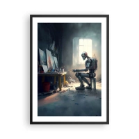 Plagát v čiernom ráme - Robotický umelec maľuje obrazy vo svojom ateliéri - 50x70cm - Akt stvorenia - Moderná nástenná dekorácia do obývacej izby a spálne ARTTOR