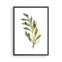 Plagát v čiernom ráme - Akvarelová vetvička s jemnými zlatými akcentmi - 50x70cm - Všetko, čo je dobré - Moderná nástenná dekorácia do obývacej izby a spálne ARTTOR