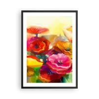 Plagát v čiernom ráme - Farebné vlčie maky na abstraktnom pozadí - 50x70cm - Nielen červené - Moderná nástenná dekorácia do obývacej izby a spálne ARTTOR