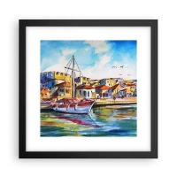Plagát v čiernom ráme - Romantický prístav - 30x30 cm