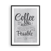 Plagát v čiernom ráme - Plagát s kávou a nápismi v štýle tabule - 50x70cm - Of course! - Moderná nástenná dekorácia do obývacej izby a spálne ARTTOR