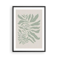 Plagát v čiernom ráme - Minimalistická ilustrácia rastliny v odtieňoch zelenej - 50x70cm - Smaragdová vetva - Moderná nástenná dekorácia do obývacej izby a spálne ARTTOR