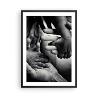 Plagát v čiernom ráme - Čiernobiely motív rúk symbolizujúcich puto - 50x70cm - Byť človekom - Moderná nástenná dekorácia do obývacej izby a spálne ARTTOR