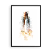 Plagát v čiernom ráme - Vzlet raketoplánu v akvarelovom štýle - 50x70cm - Prieskumníci do toho - Moderná nástenná dekorácia do obývacej izby a spálne ARTTOR