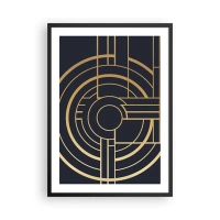 Plagát v čiernom ráme - Geometrický vzor v štýle Art Deco so zlatými prvkami na tmavom pozadí - 50x70cm - Obraty udalosti - Moderná nástenná dekorácia do obývacej izby a spálne ARTTOR