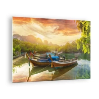 Obraz na skle - Tradičné lode v tropickej krajine pri západe slnka - 70x50cm - Pred rušným dňom - Moderná nástenná dekorácia do obývacej izby a spálne ARTTOR