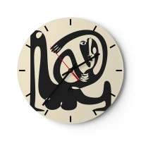 Nástenné hodiny - Čierna postava v abstraktnom štýle na krémovom pozadí - 30x30cm - Skoro Picasso - Moderná nástenná dekorácia do obývacej izby, kuchyne a spálne ARTTOR