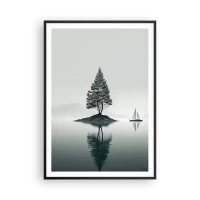 Plagát v čiernom ráme - Osamelý strom na ostrove s odrazom vo vode - 50x70cm - Snívanie - Moderná nástenná dekorácia do obývacej izby a spálne ARTTOR