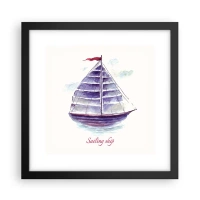 Plagát v čiernom ráme - Napnuté plachty a pokojná voda - 30x30 cm