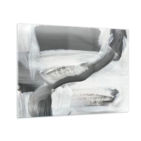 Obraz na skle - Čiernobiela abstrakcia s dynamickými ťahmi štetcom. - 70x50cm - Pevným pohybom - Moderná nástenná dekorácia do obývacej izby a spálne ARTTOR