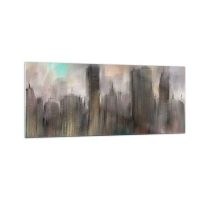Obraz na skle - Kompozícia z ocele, kameňa a hmly - 100x40 cm