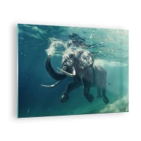 Obraz na skle - Slon pláva pod vodou v modrom oceáne - 70x50cm - Všetci radi plávajú - Moderná nástenná dekorácia do obývacej izby a spálne ARTTOR
