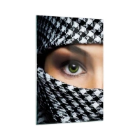 Obraz na skle - Portrét zahalenej zelenookej krásky - 70x100 cm