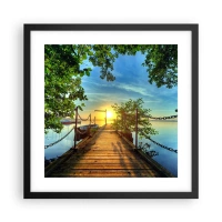 Plagát v ráme zo svetlého duba - Západ pri vode - 40x40 cm