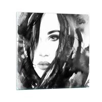Obraz na skle - Portrét dámy v čiernej a bielej - 70x70 cm