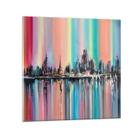Nástenné hodiny - Farebná panoráma mesta odrážajúca sa vo vode - 30x30cm - Nočný prúd svetla - Moderná nástenná dekorácia do obývacej izby, kuchyne a spálne ARTTOR
