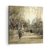 Fototapeta Standard Eco - Náčrt parkovej krajiny v teplých sépiových tónoch s postavami - 100x70cm - Pierkom zastavený okamih - Moderná nástenná dekorácia do obývacej izby a spálne ARTTOR
