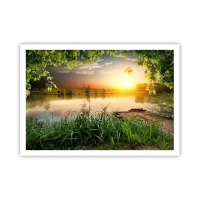 Plagát v ráme zo svetlého duba - Krajina v zelenom ráme - 100x70 cm