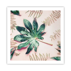 Plagát v ráme zo svetlého duba - Štúdia zelenej na ružovom pozadí - 60x60 cm