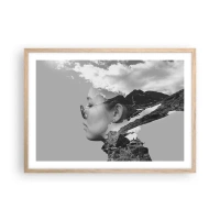 Plagát v ráme zo svetlého duba - Povznešený portrét v oblakoch - 70x50 cm