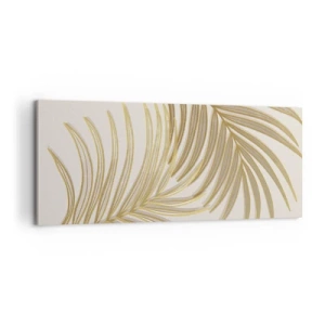 Obraz na plátne - Zlaté palmové listy na svetlom pozadí v minimalistickom štýle - 70x50cm - Zlatá palma! - Moderná nástenná dekorácia do obývacej izby a spálne ARTTOR