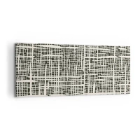 Obraz na skle - Čiernobiela abstrakcia pripomínajúca mriežku bodiek. - 70x50cm - Tkaná kompozícia - Moderná nástenná dekorácia do obývacej izby a spálne ARTTOR