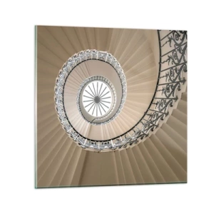 Nástenné hodiny - Točité schodisko v sépiovej farbe s výhľadom nahor - 30x30cm - Vnútri mušle - Moderná nástenná dekorácia do obývacej izby, kuchyne a spálne ARTTOR
