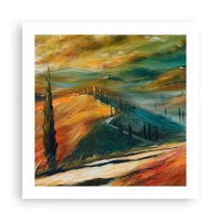 Plagát v bielom ráme - Toskánska krajina - 50x50 cm