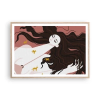 Plagát v ráme zo svetlého duba - Sen o zlatom koni - 100x70 cm