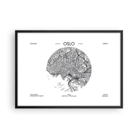 Obraz na skle - Mapa mesta Oslo v čiernobielom grafickom štýle - 70x50cm - Anatómia Osla - Moderná nástenná dekorácia do obývacej izby a spálne ARTTOR