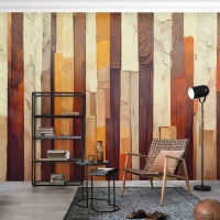 Fototapeta Standard Eco - Zvislé pruhy pripomínajúce kmene stromov v teplých farbách - 100x70cm - Hymna lesných stromov - Moderná nástenná dekorácia do obývacej izby a spálne ARTTOR