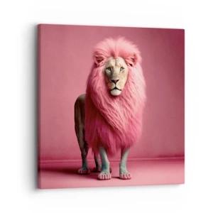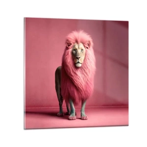 Nástenné hodiny - Lev s intenzívne ružovou hrivou na pozadí rovnakej farby - 30x30cm - A už sa nebojíš - Moderná nástenná dekorácia do obývacej izby, kuchyne a spálne ARTTOR