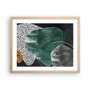 Plagát v ráme zo svetlého duba - Farebná abstrakcia so zlatou vločkou - 50x40 cm