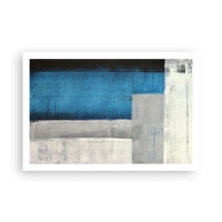 Plagát v bielom ráme - Poetická kompozícia šedej a modrej - 100x70 cm