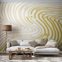 Fototapeta Standard Eco - Žlté a béžové vlnovky na bielom pozadí v abstraktnom štýle. - 100x70cm - Kompozícia s miernym ohybom - Moderná nástenná dekorácia do obývacej izby a spálne ARTTOR