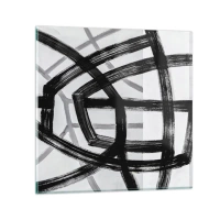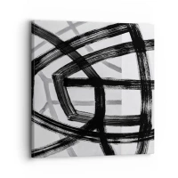 Nástenné hodiny - Dynamické čierne ťahy štetcom vytvárajúce trojrozmerné vzory - 30x30cm - Hĺbka - Moderná nástenná dekorácia do obývacej izby, kuchyne a spálne ARTTOR