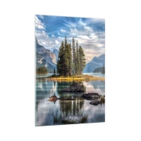 Plagát v čiernom ráme - Horská krajina s ostrovom obklopeným pokojným jazerom - 50x70cm - Pri veľkej a čistej vode… - Moderná nástenná dekorácia do obývacej izby a spálne ARTTOR