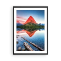 Plagát v čiernom ráme - Hora sa odráža v pokojnom jazere - 50x70cm - Teplo a chlad - Moderná nástenná dekorácia do obývacej izby a spálne ARTTOR