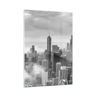 Plagát v čiernom ráme - Čiernobiely pohľad na panorámu mesta s mrakodrapmi v oblakoch - 50x70cm - Americká krajina - Moderná nástenná dekorácia do obývacej izby a spálne ARTTOR