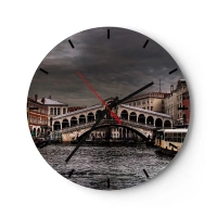 Nástenné hodiny - Most Rialto v Benátkach pod zamračenou oblohou - 30x30cm - Sľub benátskeho večera - Moderná nástenná dekorácia do obývacej izby, kuchyne a spálne ARTTOR