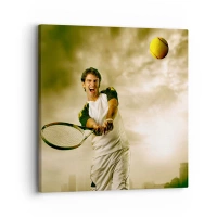 Nástenné hodiny - Tenista odpaľujúci loptičku proti zlatej oblohe - 30x30cm - Energia a radosť - Moderná nástenná dekorácia do obývacej izby, kuchyne a spálne ARTTOR