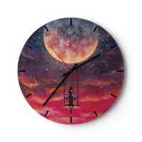 Nástenné hodiny - Dievča na hojdačke zavesené pod mesiacom - 30x30cm - Stavať si vzdušné zámky - Moderná nástenná dekorácia do obývacej izby, kuchyne a spálne ARTTOR