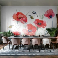 Samolepiaca Fototapeta Deluxe Sticker - Poľské kvety - Kvety, Mak, Príroda - 300x210 cm