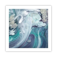 Plagát v ráme zo svetlého duba - Prúdy modrej - 50x50 cm