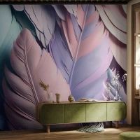 Samolepiaca Fototapeta Deluxe Sticker - Vtáčí štýl - Pastel, Perie, Ľahkosť - 200x140 cm