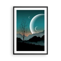 Plagát v čiernom ráme - Umelecká krajina s mesiacom na pozadí hôr a stromov - 50x70cm - Karneval hviezdnej noci - Moderná nástenná dekorácia do obývacej izby a spálne ARTTOR
