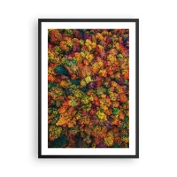 Plagát v čiernom ráme - Farebný les videný z vtáčej perspektívy v jeho jesennej palete - 50x70cm - Kytica jesenných stromov - Moderná nástenná dekorácia do obývacej izby a spálne ARTTOR