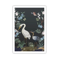 Plagát v bielom ráme - Vtáčí sprievod - 70x100 cm