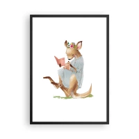 Plagát v čiernom ráme - Klokan číta knihu s dieťaťom v umeleckom štýle. - 50x70cm - Prečítaj mi, mama - Moderná nástenná dekorácia do obývacej izby a spálne ARTTOR