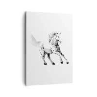 Plagát v čiernom ráme - Minimalistická ilustrácia cválajúceho koňa - 50x70cm - Neskrotená duša - Moderná nástenná dekorácia do obývacej izby a spálne ARTTOR